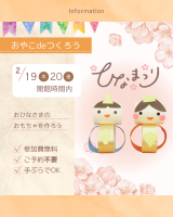 ★2月19日(木)20日(金)親子制作でひな人形を作ります★