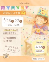 ★3月26日(木)27日(金)10:00~3月生まれ誕生会です★